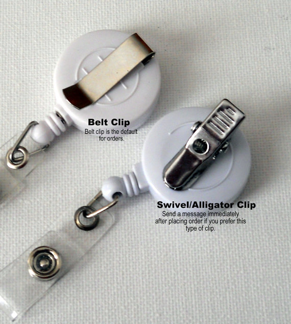 Badge holders will be shipped with belt clip but if you'd like an alligator clip just indicate that in a message when ordering.