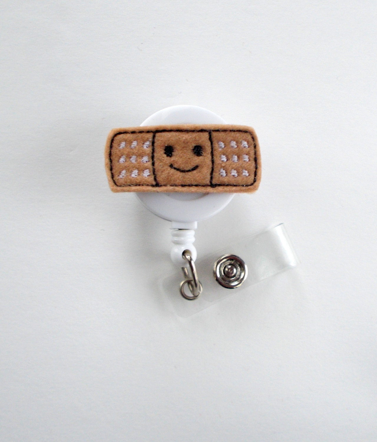 Smiling Bandaid - Retractable Badge Reel - Name Badge Holder - Nurse Badge Holder - Pediatric Nurse Badge - Felt Badge - RN Badge Holder