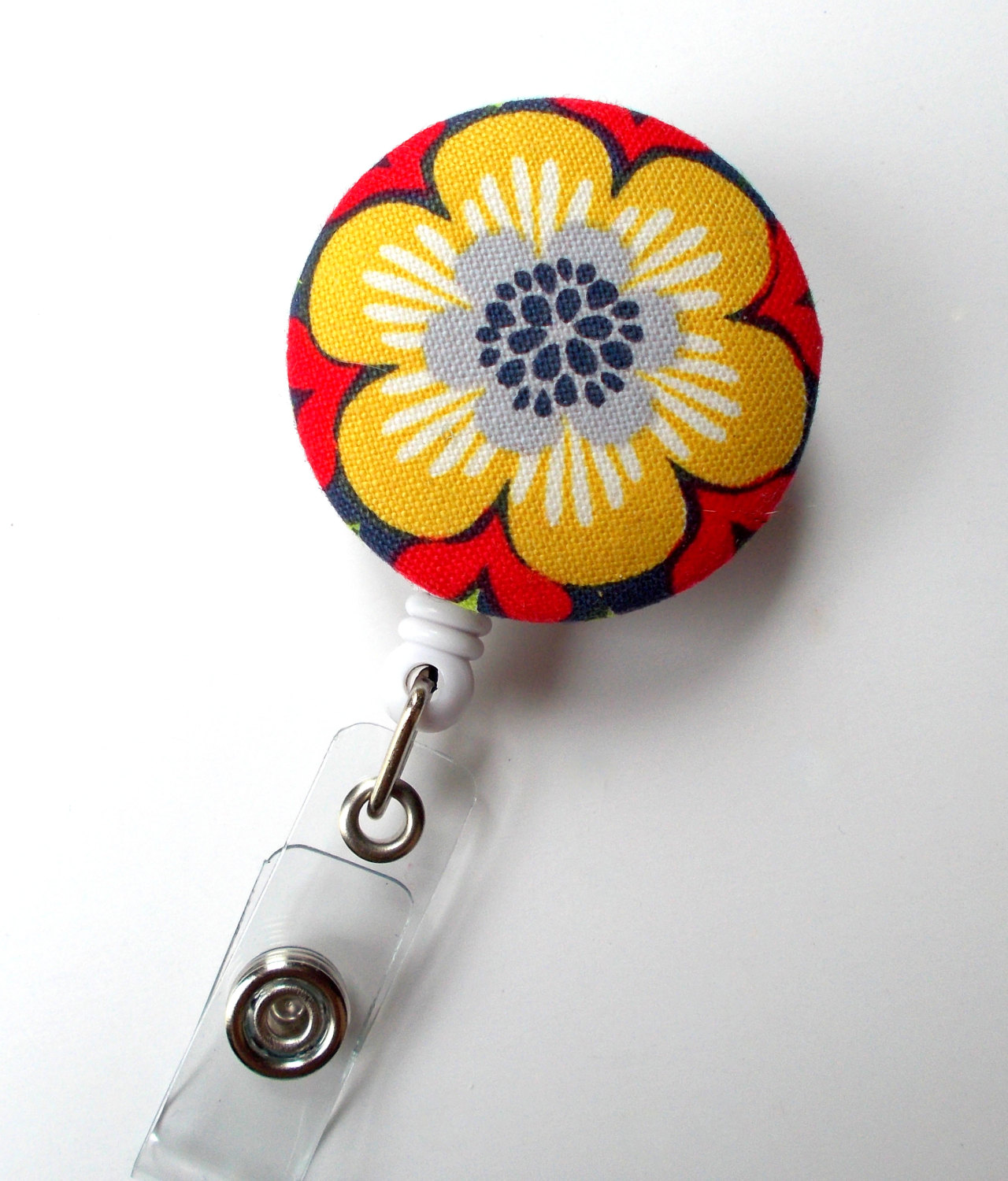Flower Red Yellow Gray - Cute ID Badge Reel - Nurse Badge Holder - Nursing Badge Reel - Retractable ID Badge Reel - Teacher Badge - Nurse