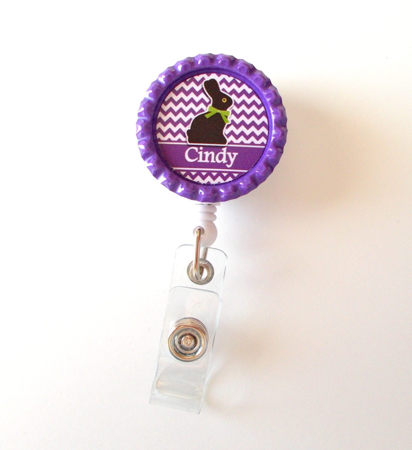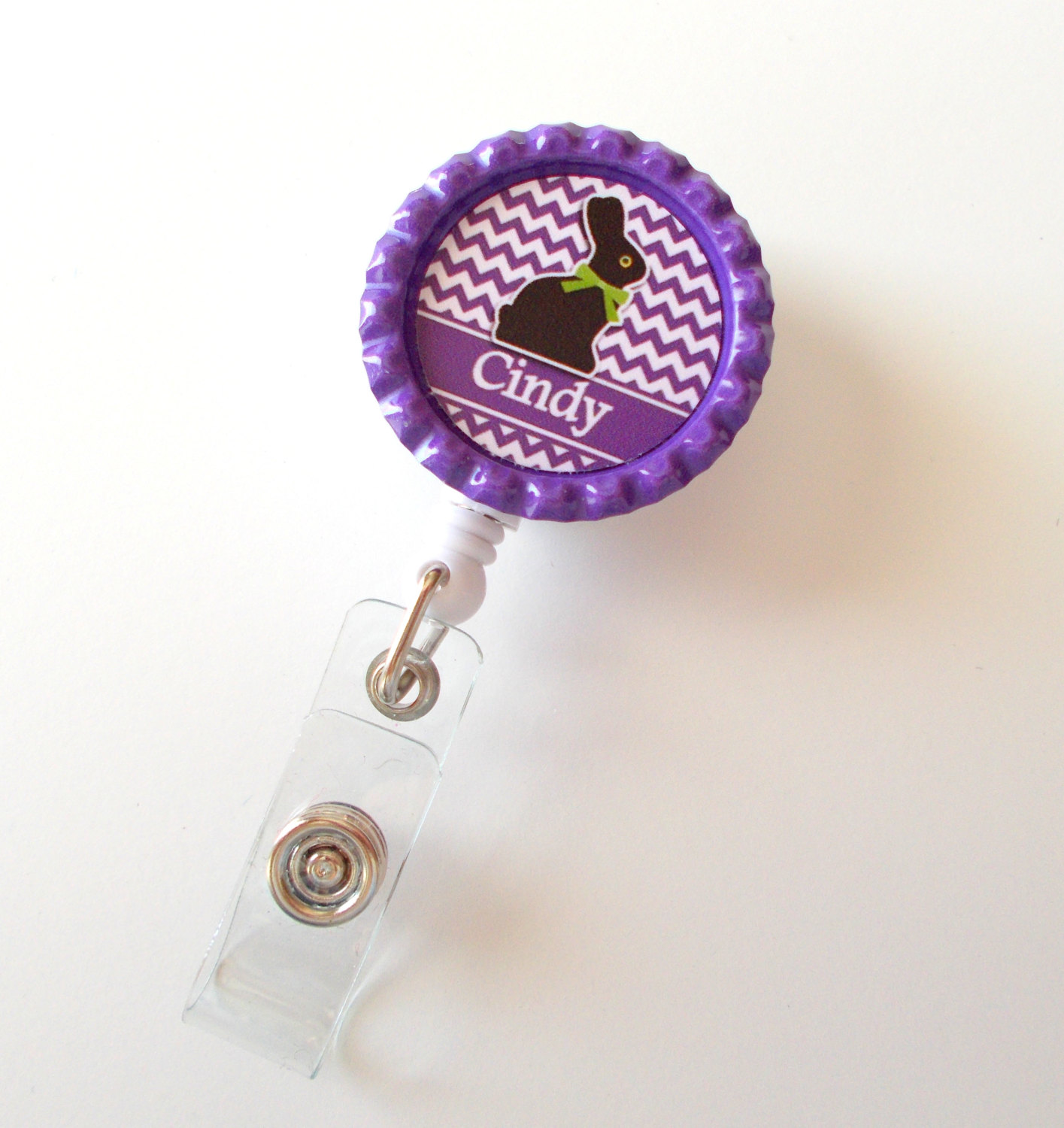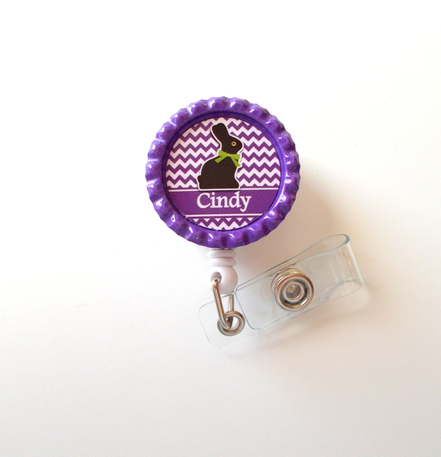 Personalized Easter Bunny Purple - ID Badge Holder - Badge Reel - Name Badge Holder - Bottle Cap Badge - Nursing Badge - Nurse Badge Holder