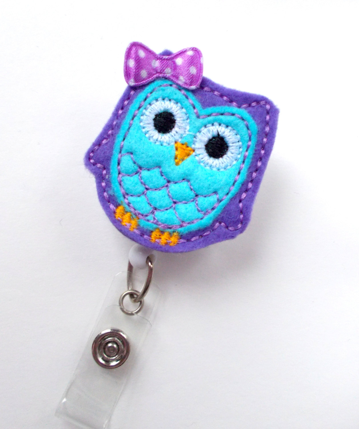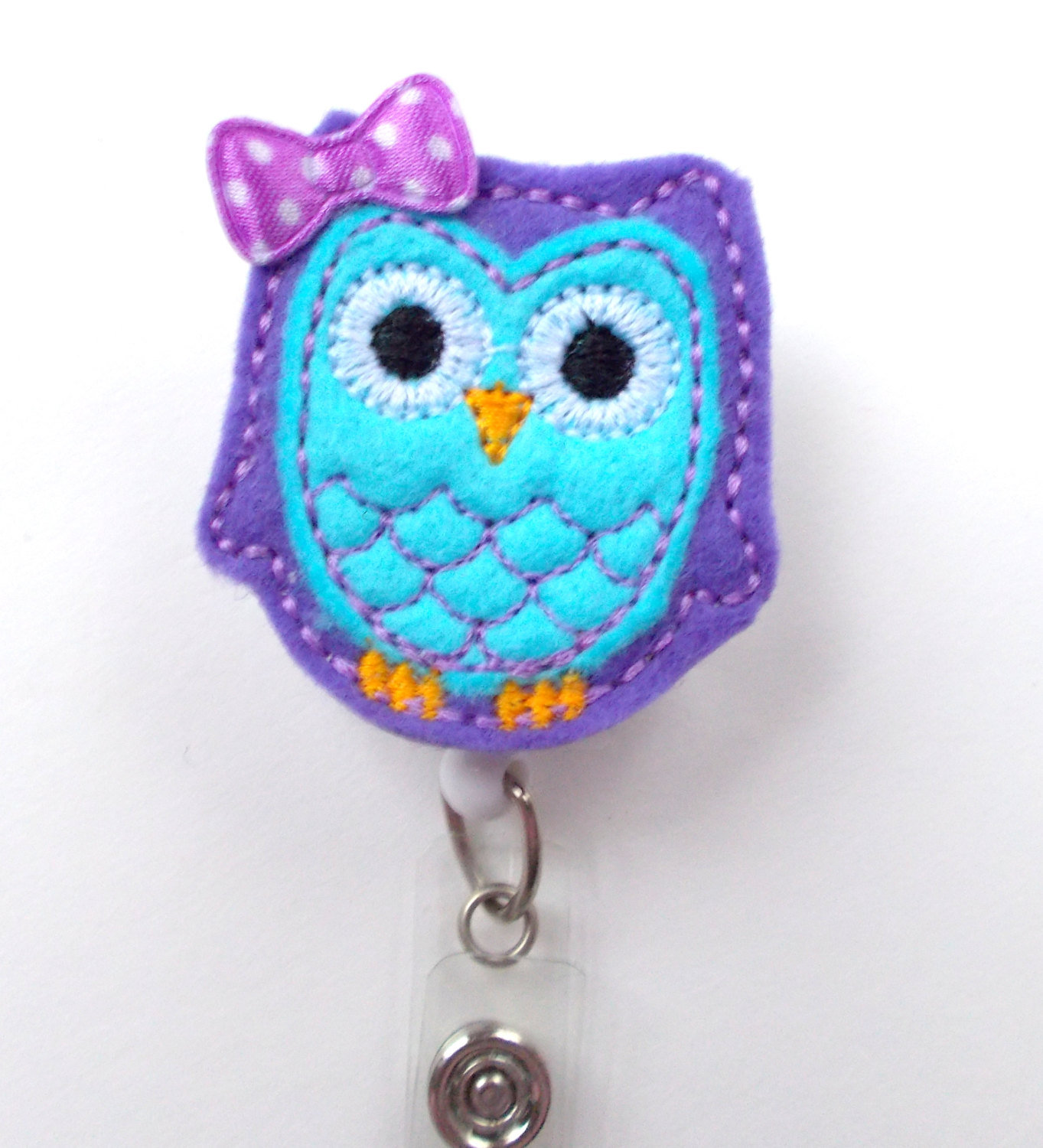 Blueberry Owl with bow - Cute Badge Holder - Nurses Badge Holder - Felt Badge - Nursing Badge Holder - Cute Badge Reel - RN Badge Reel