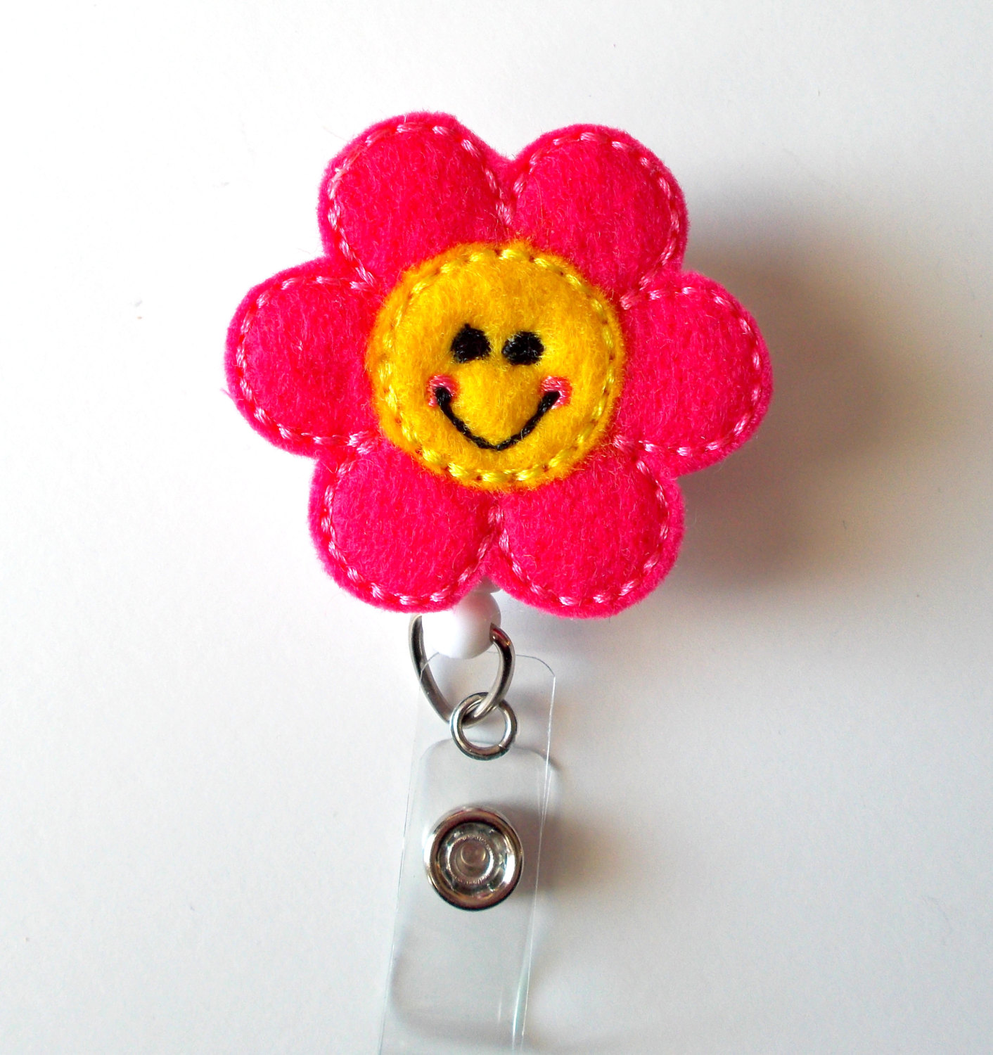 Happy Flower - Retractable ID Badge Reel - MD Badge Holder - Cute Badge Reel - Nurse Badge Holder - Nursing Badge Clip - Teacher Badge