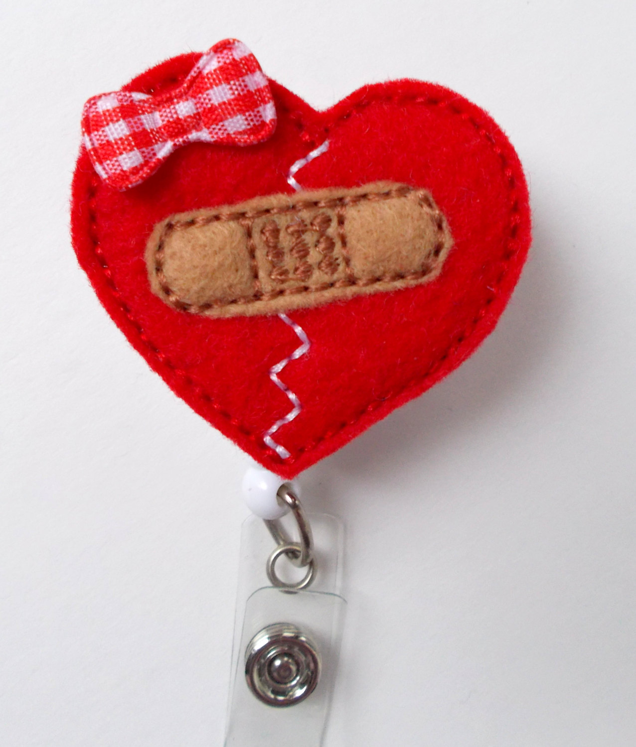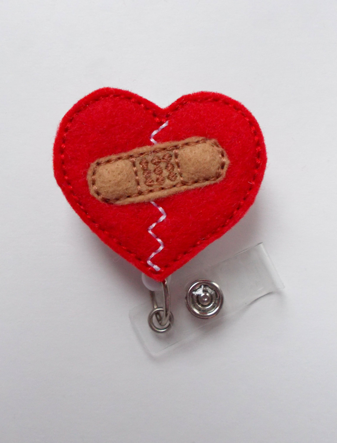 Mended Bandaid Heart - Retractable Badge Reel - Nurse Badge Holder - Nursing Badge - Felt Badge - RN Badge - Pediatric Nurse Badge - Gift