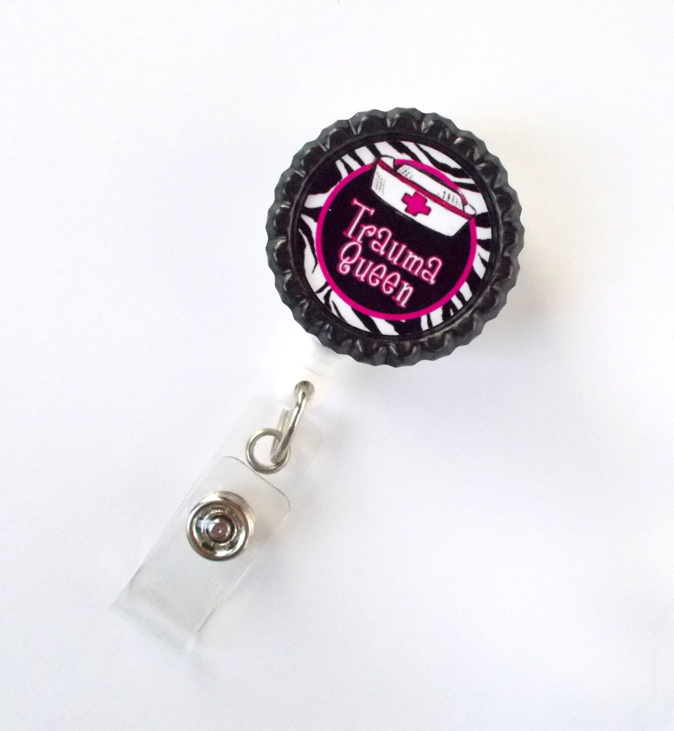 Trauma Queen - Name Tag Badge - ID Badge Holder - Badge Reel - Nurse ID Badge Clip - Emergency Room Nurse Badge - Trauma Nurse Badge