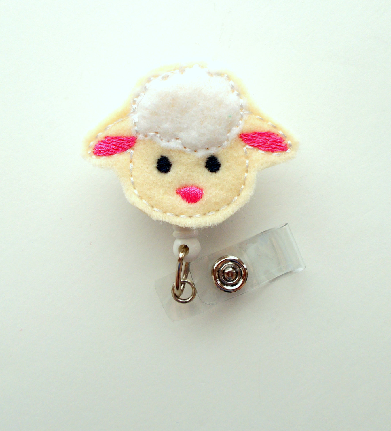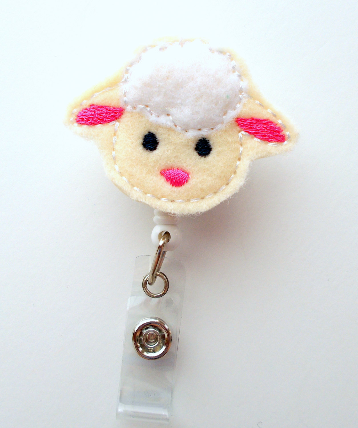 Sweet Lamb - Retractable ID Badge Reel - Name Badge Holder - Cute Badge Reel - Nurse Badge Holder - Nursing Badge Clip - Feltie Badge