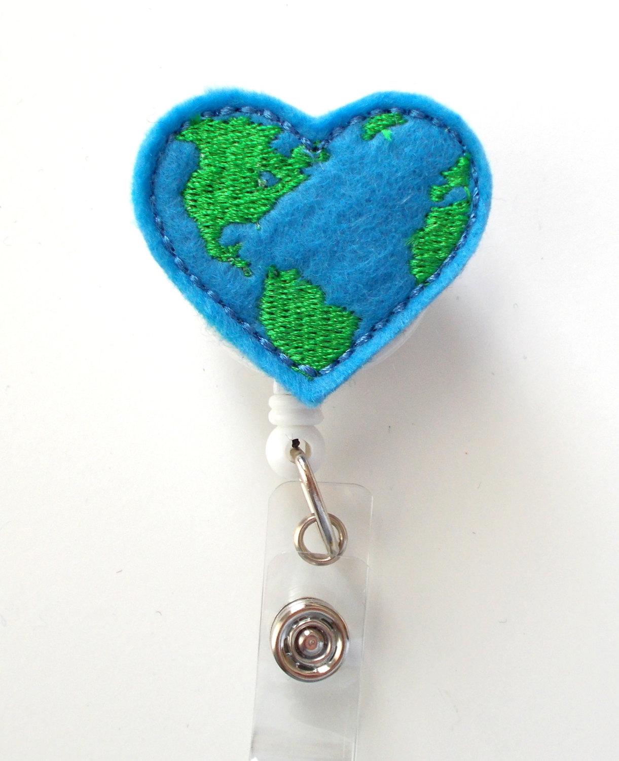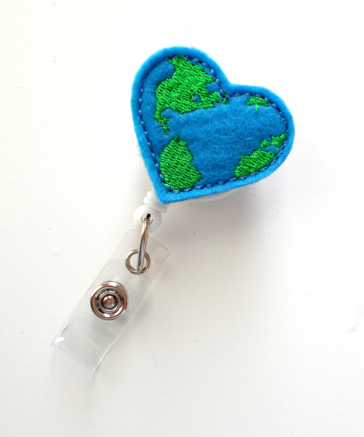 Earth Heart - Retractable Badge Reel - MD Badge Holder - Teacher Badge Reel - Nurse Badge Holder - Nursing Badge Clip - Felt Badge