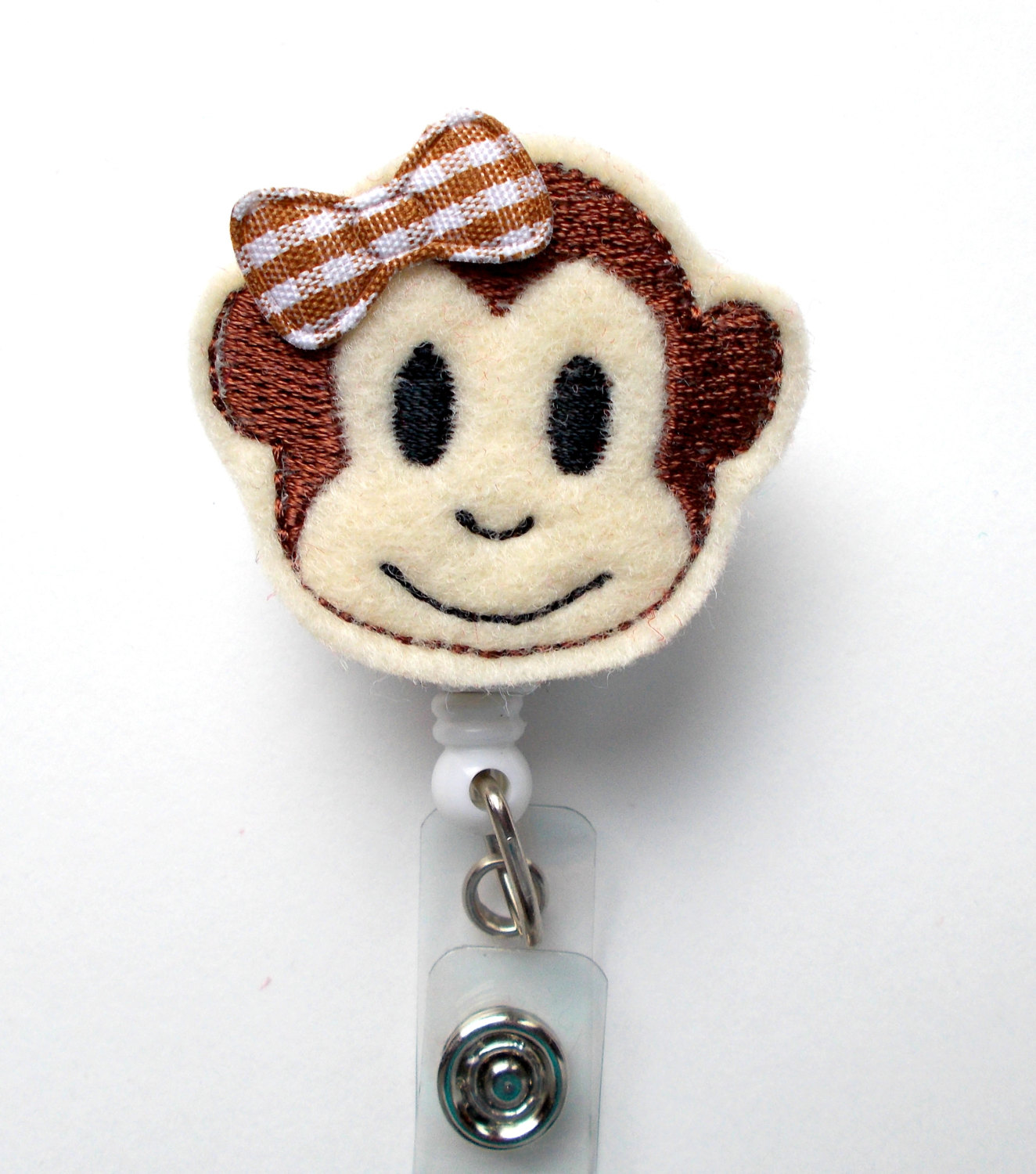 Maria the Monkey - Retractable Badge Reel - Name Badge Holder - Cute Badge Reel - Nurse Badge Holder - Nursing Badge Clip - Felt Badge - RN