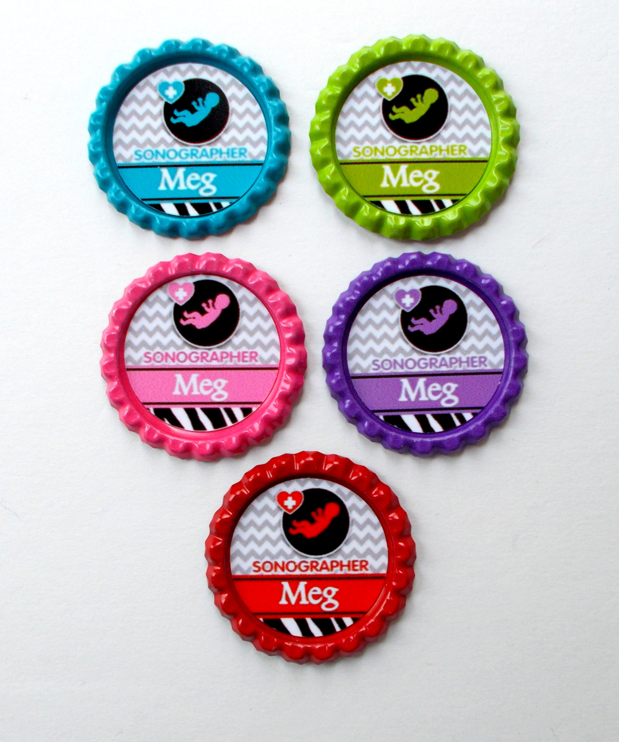 Personalized Sonographer - Name Badge Holder - Retractable ID Badge Reel - Ultrasound Tech Badge Holder - Sonographer Badge - Bottle Cap ID