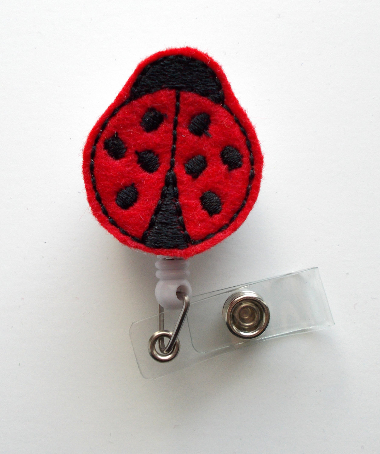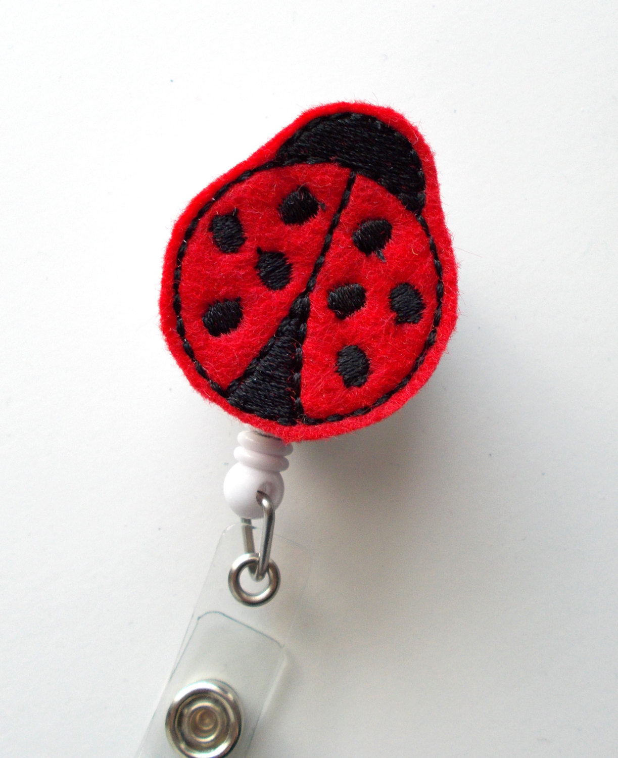 Ladybug II - Retractable ID Badge Reel - Name Badge Holder - Teacher Badge Reel - Teacher Badge Holder - Nursing Badge - Felt Badge