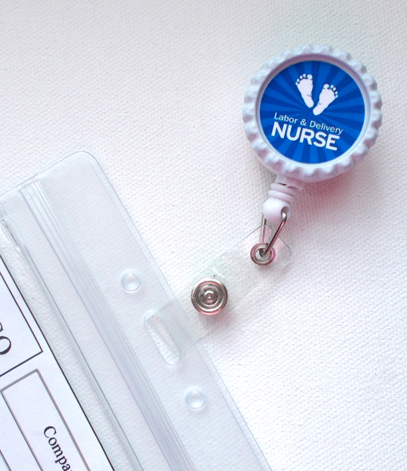 Labor and Delivery Nurse - Little Feet - ID Badge Reel - Name Badge Holder - Nursing Badge - Nurse ID Badge Clip - Nurses Badge Holder