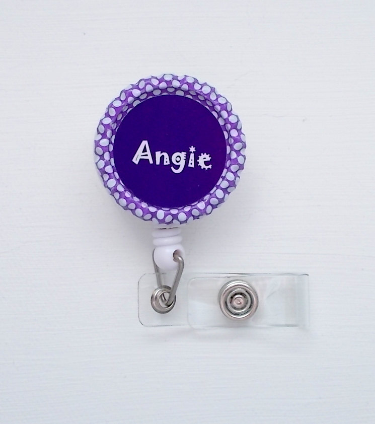 Personalized Purple Polka Dot - Bottle Cap ID Badge Reel - Nurses Badge Holder - Name Tag Holder