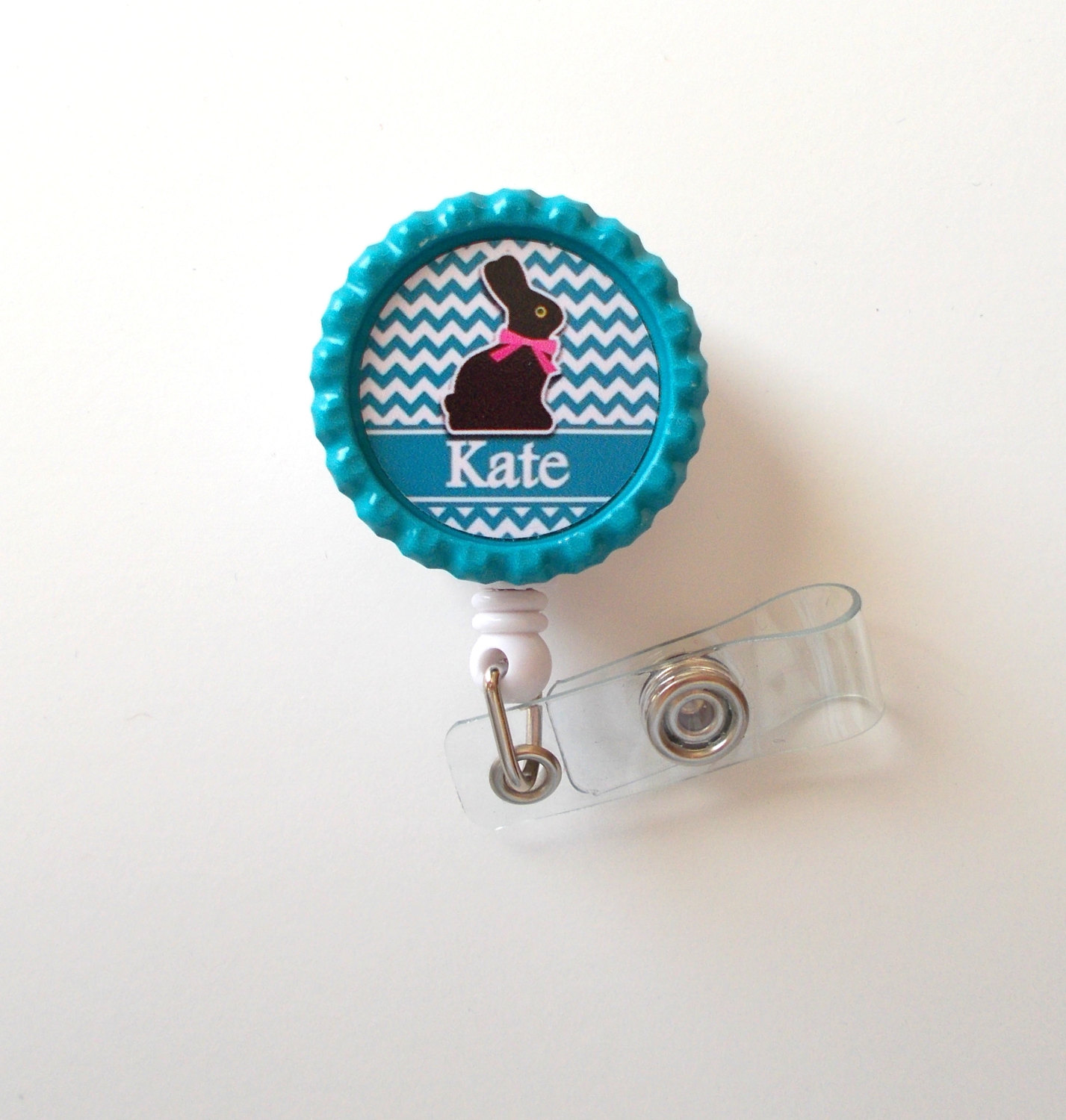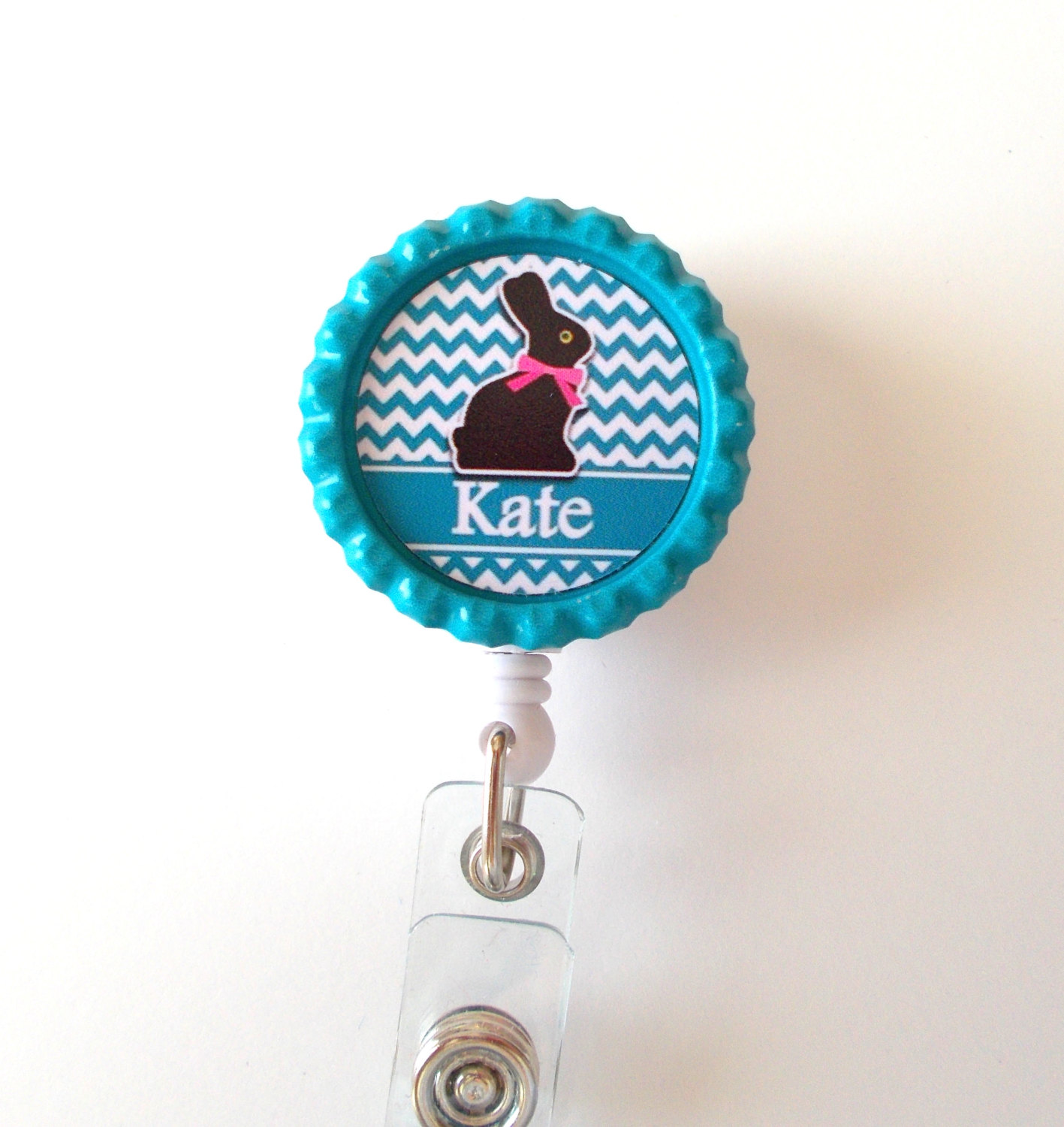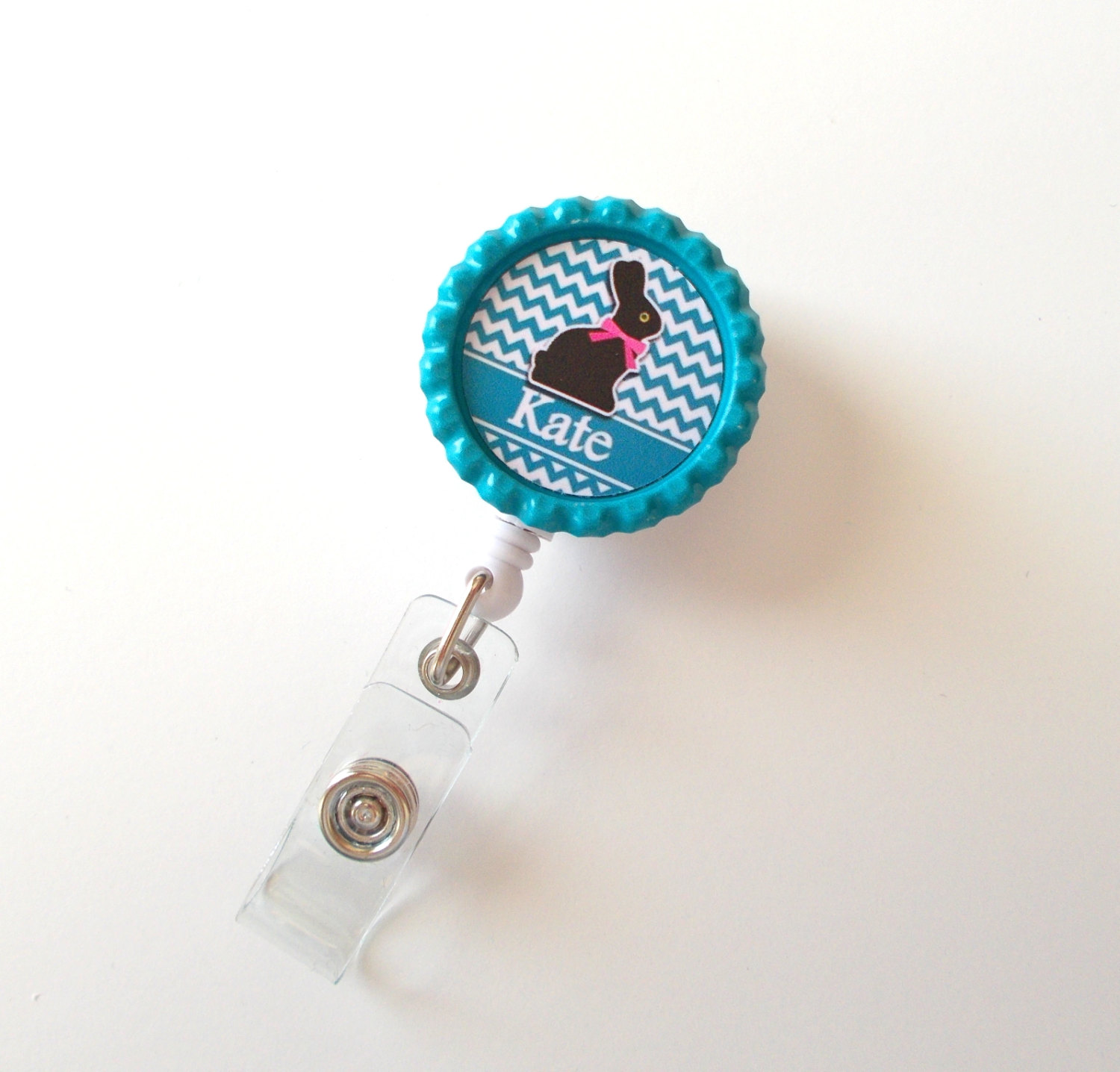 Personalized Easter Bunny Aqua - ID Badge Holder - Badge Reel - Name Badge Holder - Bottle Cap Badge - Nursing Badge - Nurse Badge Holder