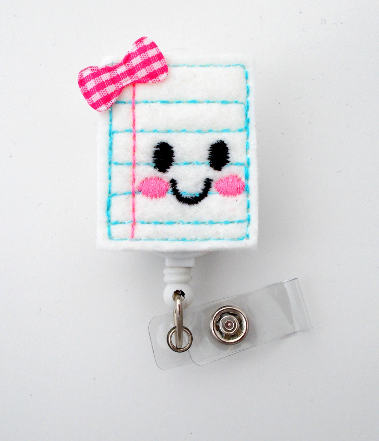 Notebook Nellie - Retractable ID Badge Reel - Name Badge Holder - Cute Badge Reel - School Badge Holder - Teacher Badge Clip - Felt Badge