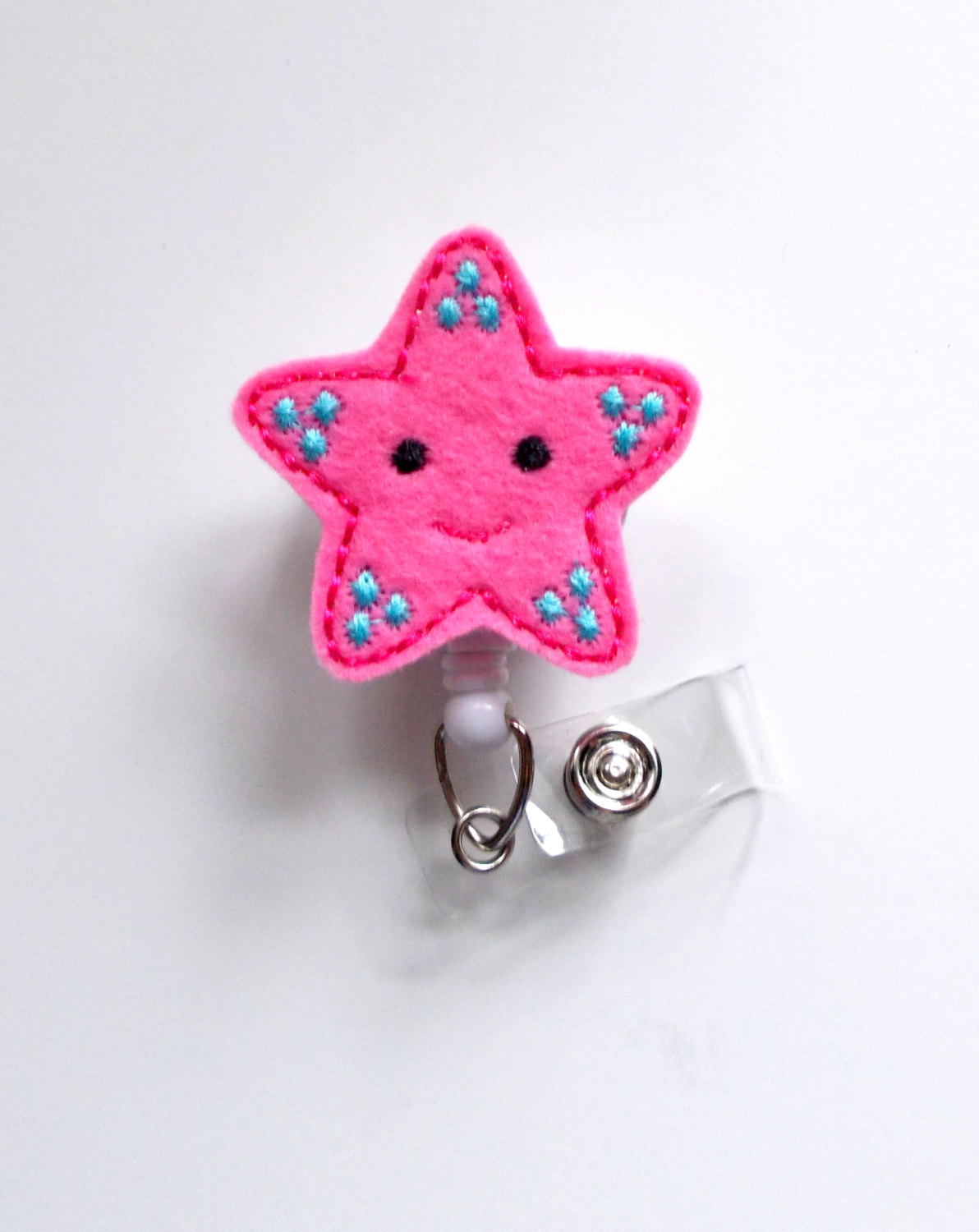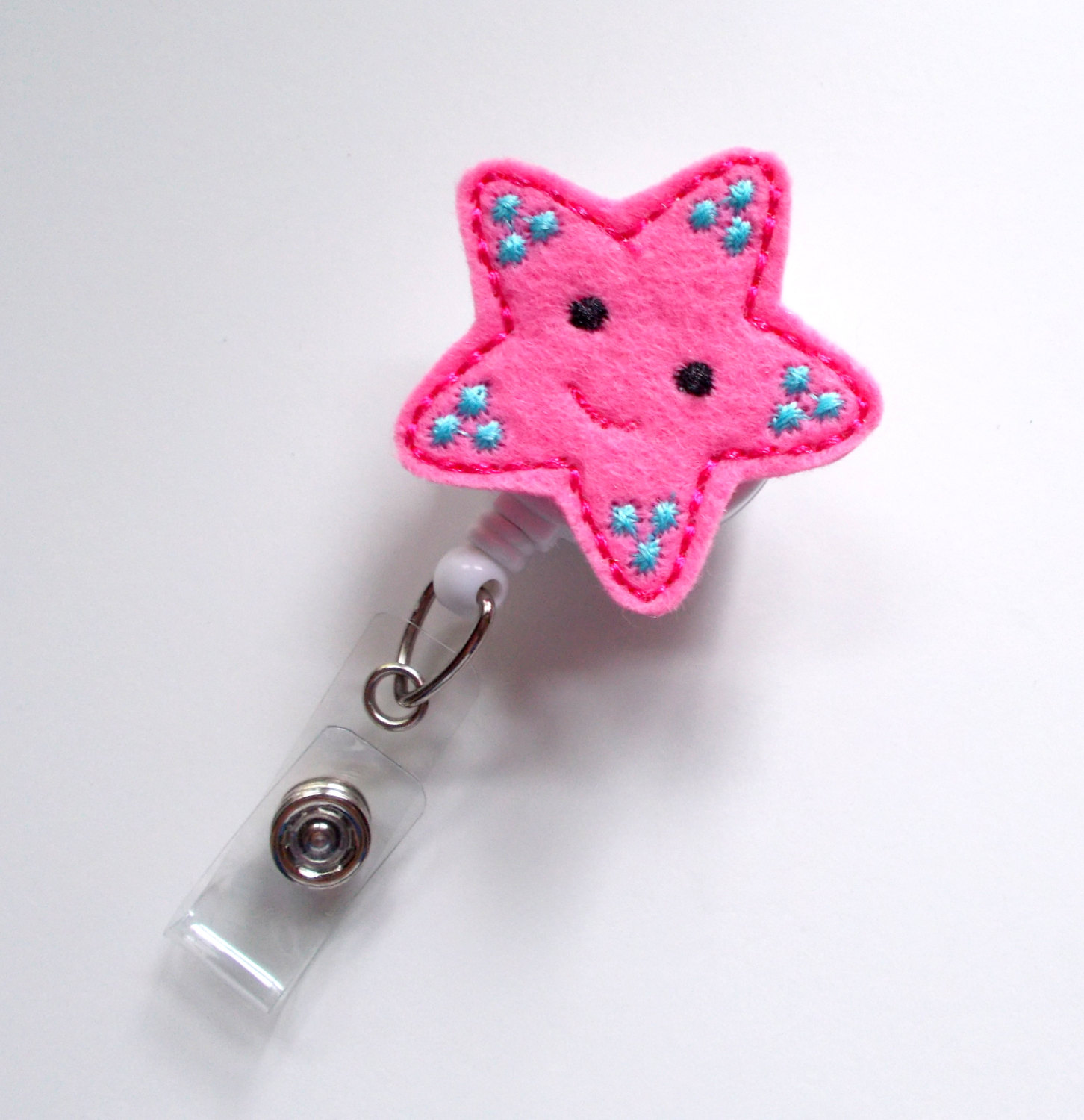 Starfish Pink - Retractable ID Felt Badge Holder - Nurse Gift - RN Badge - Nurse Badge Holder - Nursing Badge Clip