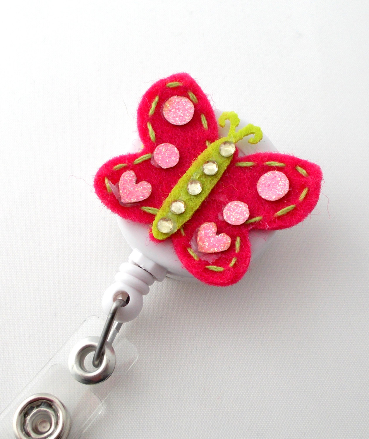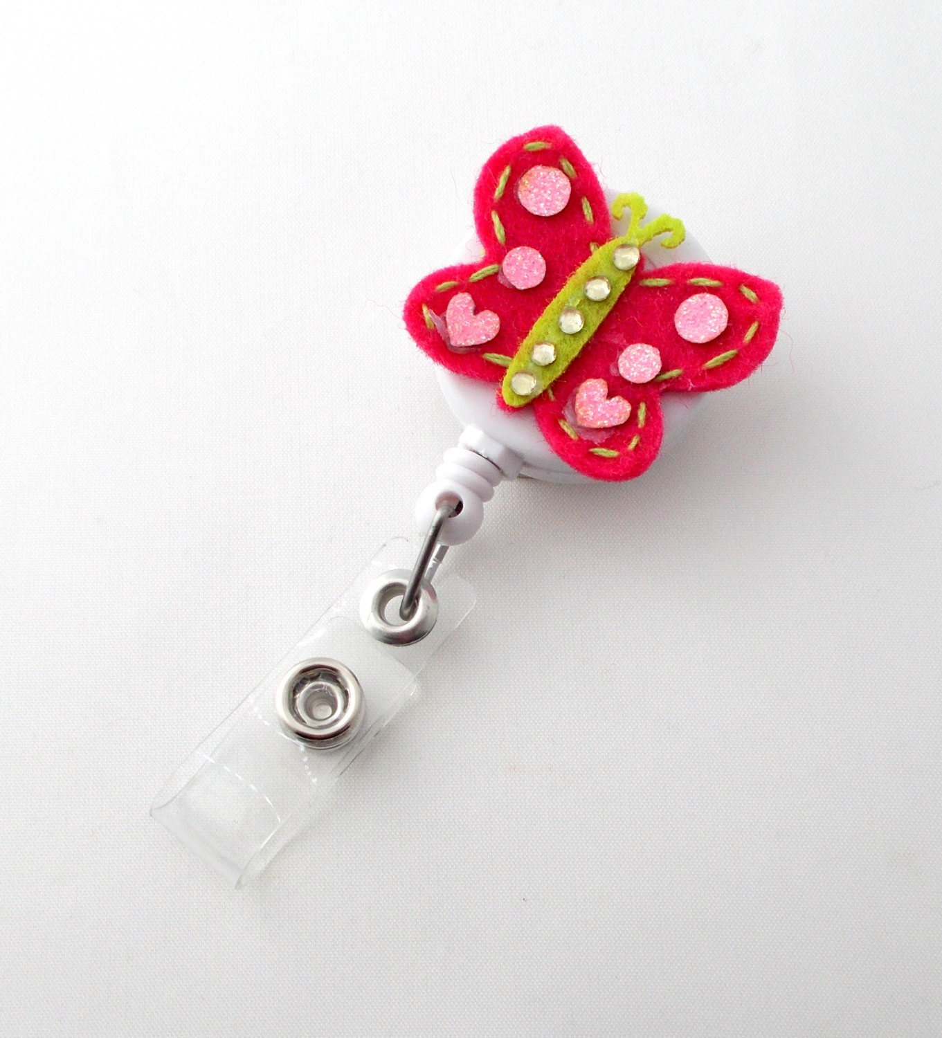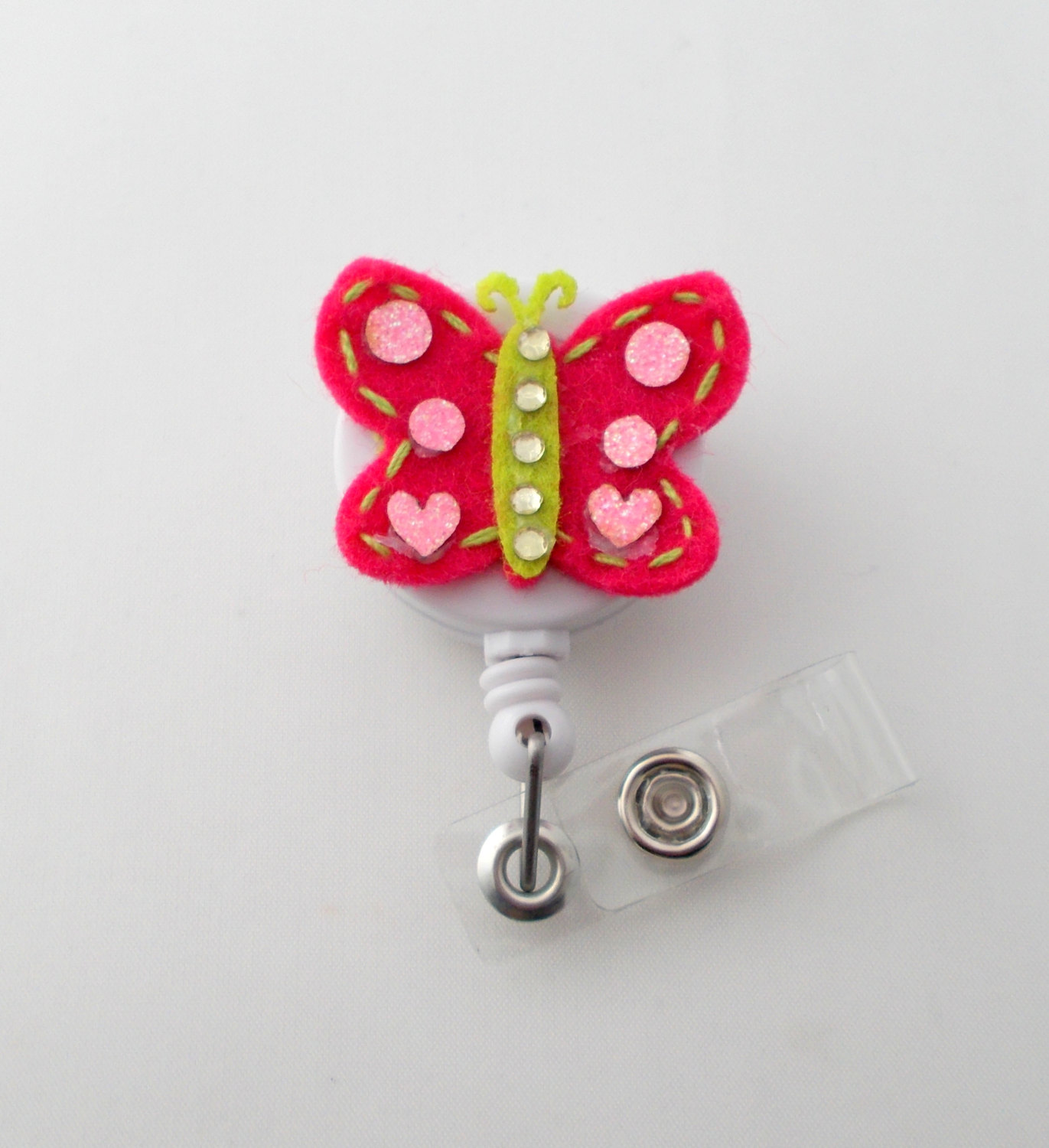 Butterfly Sparkle - Retractable ID Badge Reel - RN Badge Holder - Badge Clip - Teacher ID - Nursing Badge Holder - Felt Badge Reel