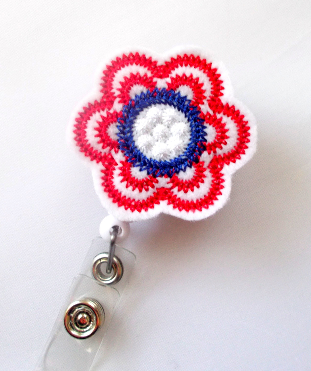 Patriotic Flower - Retractable ID Felt Badge Holder - Name Badge Holder - Cute Badge Reel - Nursing Badge - Felt Badge Reel