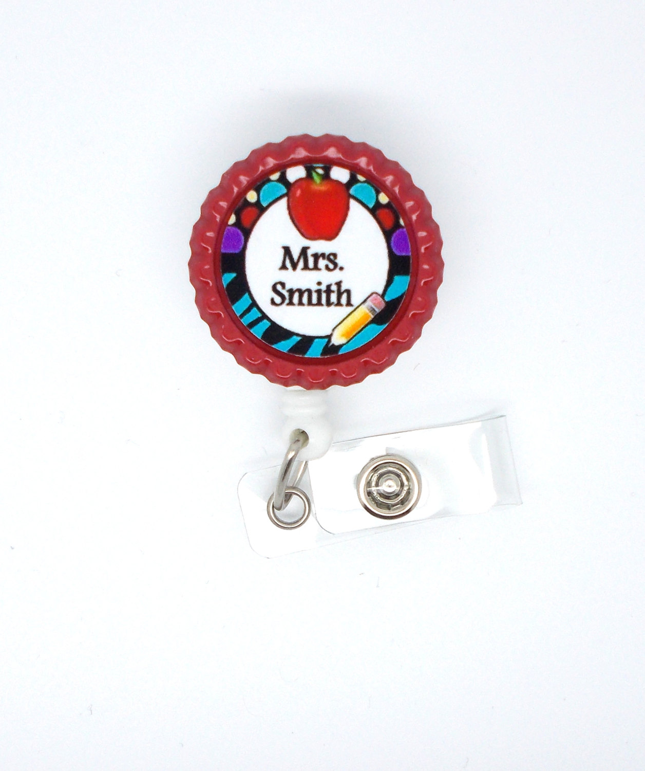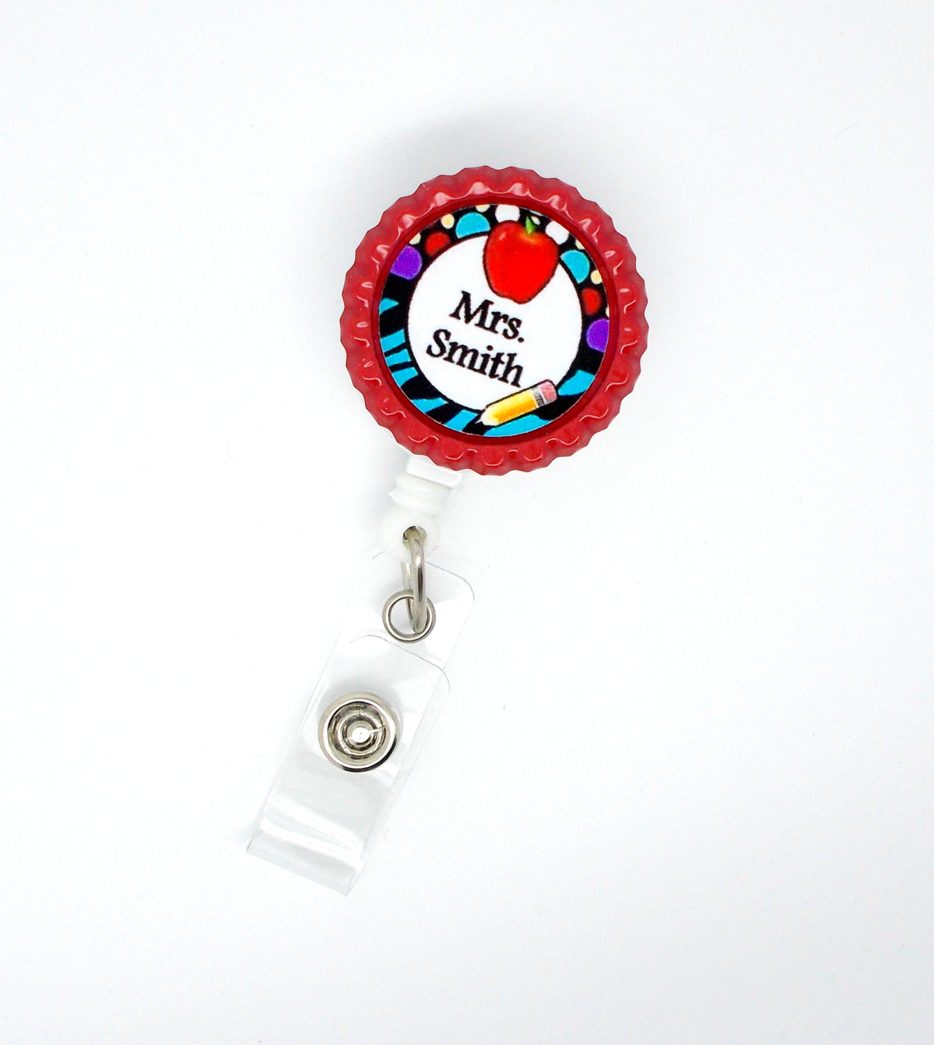 Personalized Teacher with Apple - ID Badge Holder - Badge Reel - Name Badge Holder - Teacher Badge - School Badge - Preschool Badge Holder