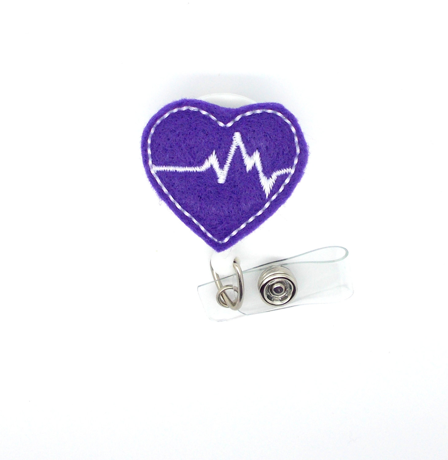 Beating Heart Purple - Retractable Badge Reel - Cardiac Care Badge - Heartbeat Badge - Nurse Badge Holder - Nursing Badge Clip - Felt Badge