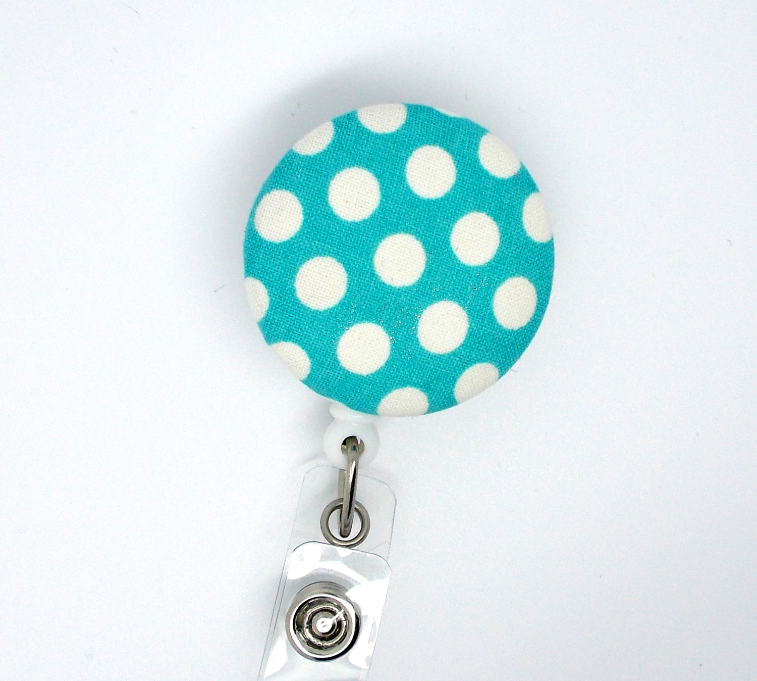 Aqua and White Polka Dot - Name Badge Holder - Retractable ID Badge Reel - Teacher Badge Clip - Nurse Badge Holder - Unique Badge Reel - RN