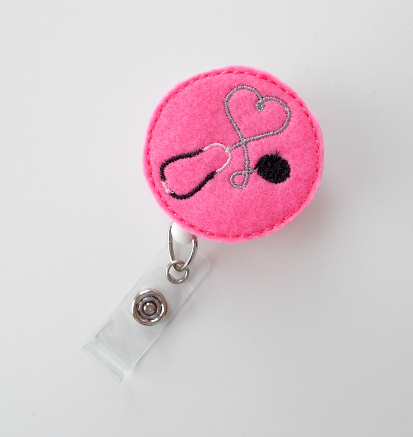 Pink Stethoscope - Cute Badge Clip - Nurses Badge Holder - MD Badge - Nursing Badge Holder - Cute Badge Reel - RN Badge Reel - Doctor Badge