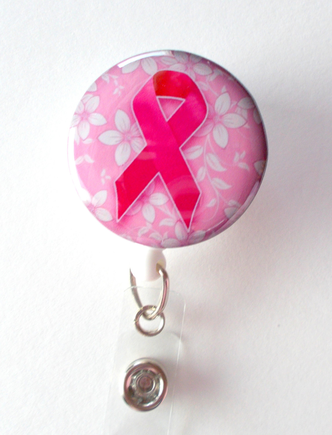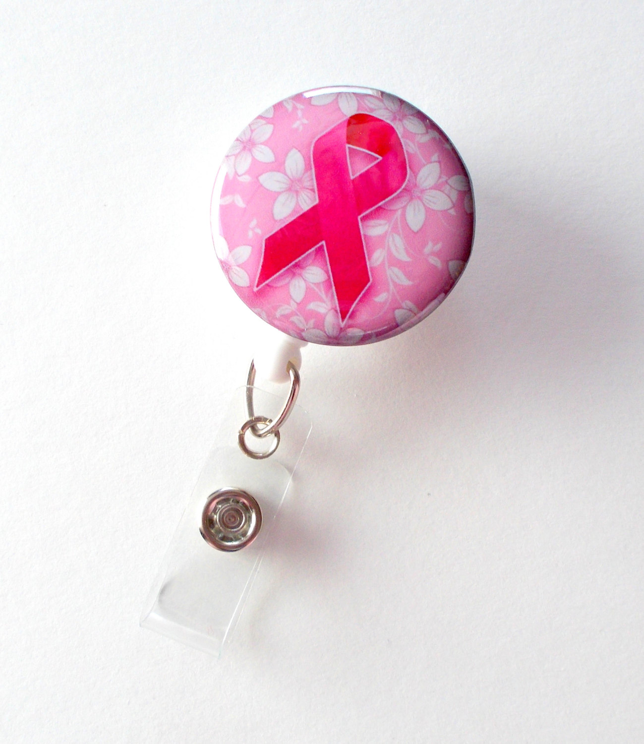 Breast Cancer Awareness Floral - ID Badge Holder - Lanyard - Breast Cancer Badge Reel - Nursing Badge - Teacher Badge Reel - Medical Badge