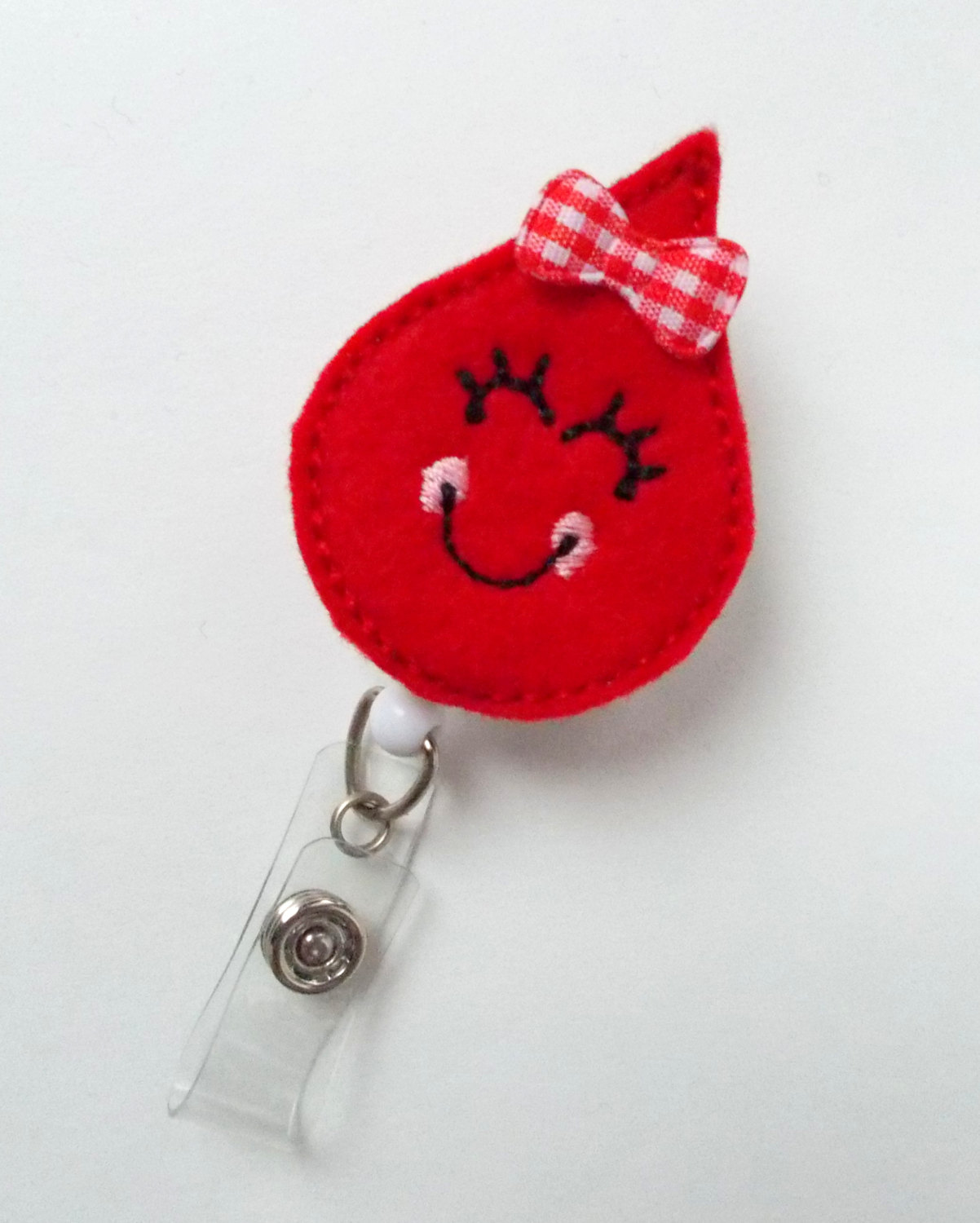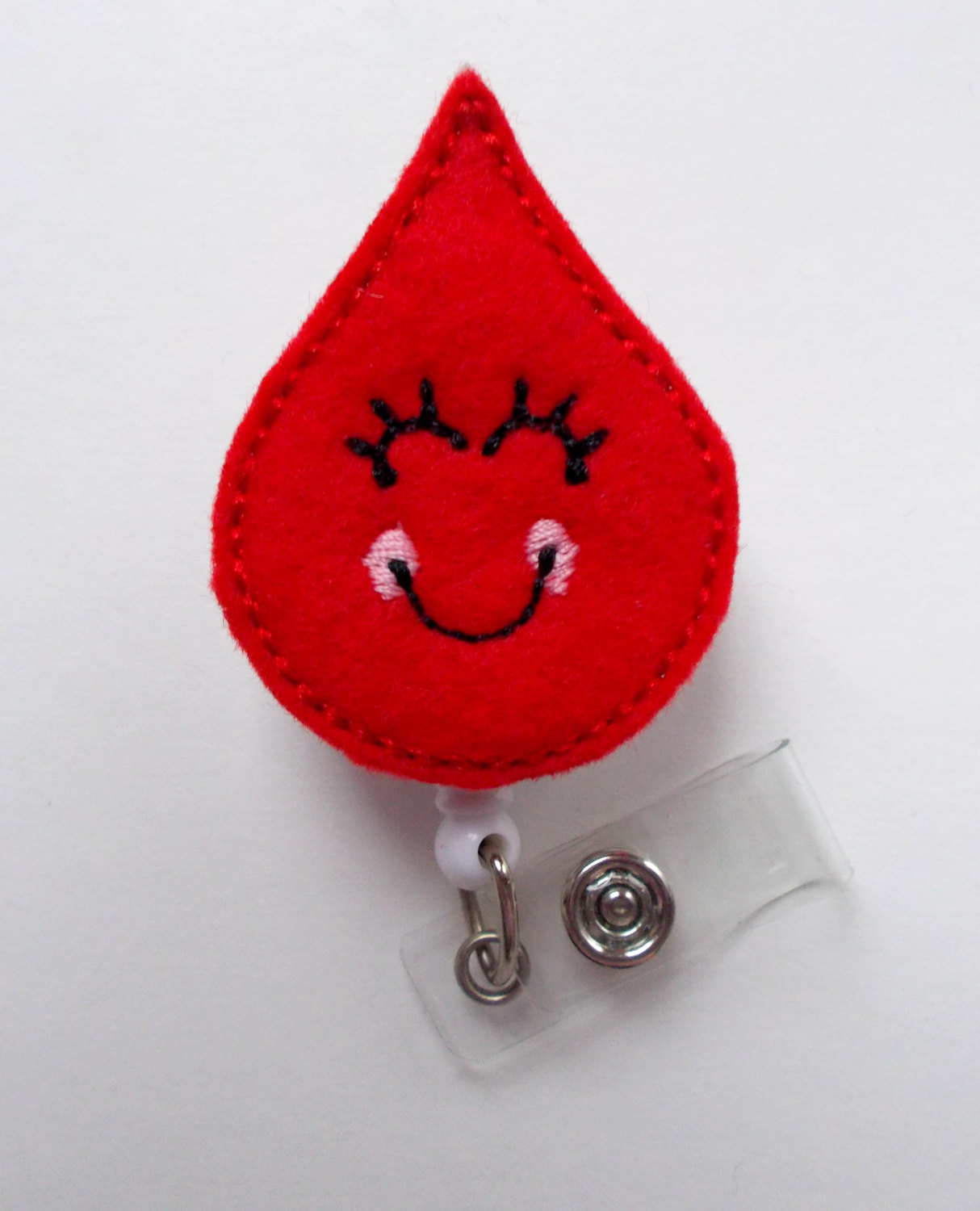 Smiling Blood Drop - Retractable Badge Reel - Name Badge Holder - Cute Badge Reel - Badge Reels - Lab Technician Badge - Hospital Badges