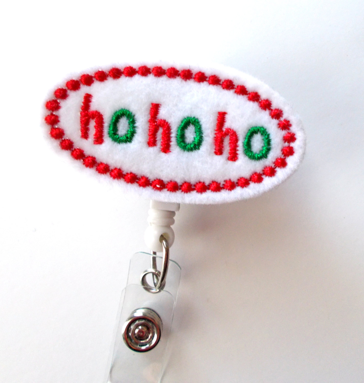 Ho Ho Ho - Retractable ID Felt Badge Holder - Holiday Badge Reel - Nurses Badge Holder - Nurse Badge - Teacher Badge