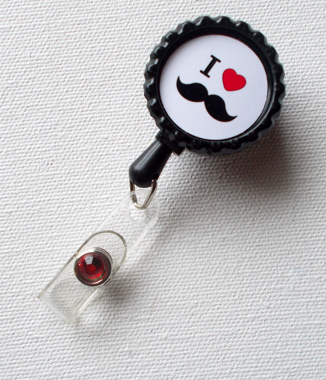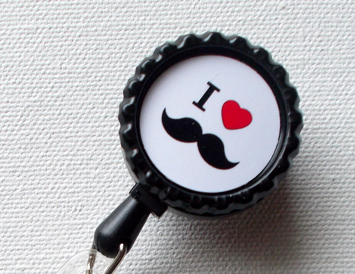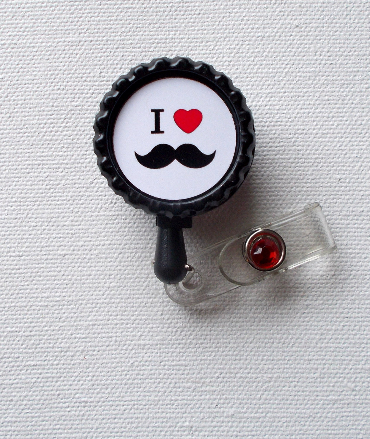 I Love Mustache - ID Badge Holder - Badge Reel - Geeky Badge Holder - Badge Holder for Nurses - Nursing Badge