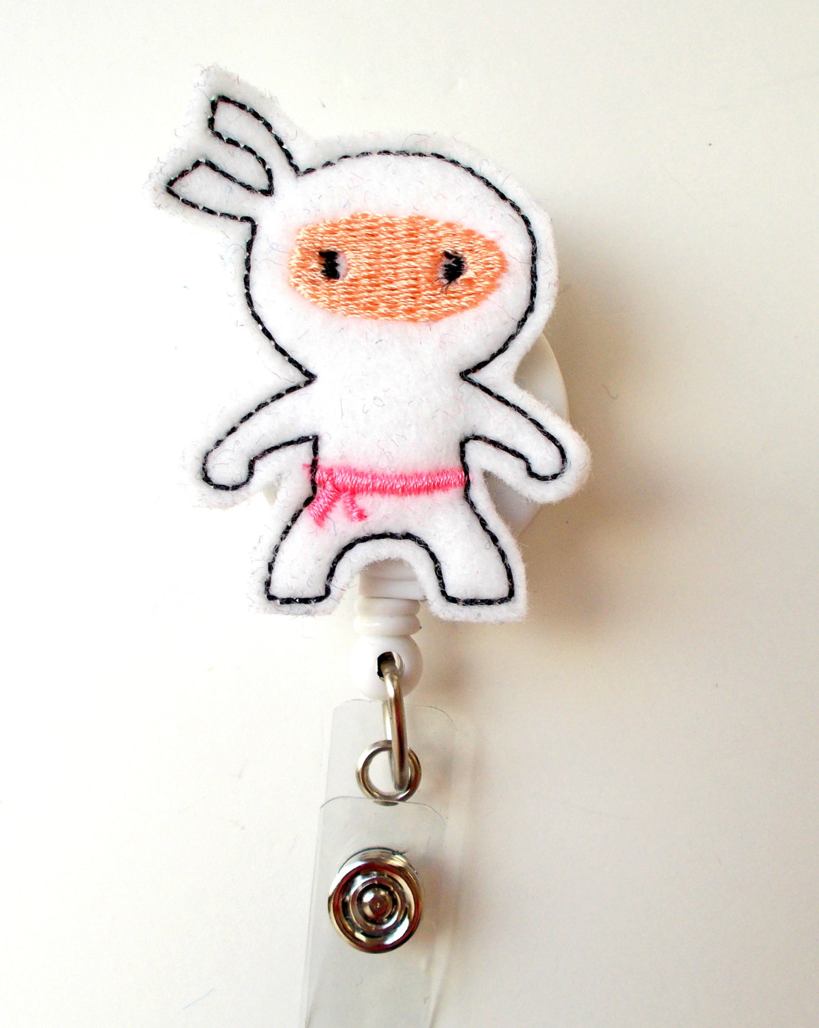 Ninja White - Retractable ID Felt Badge Holder - Cute Badge Reel - Nurses Badge Holder - Nurse Badge - Teacher Badge