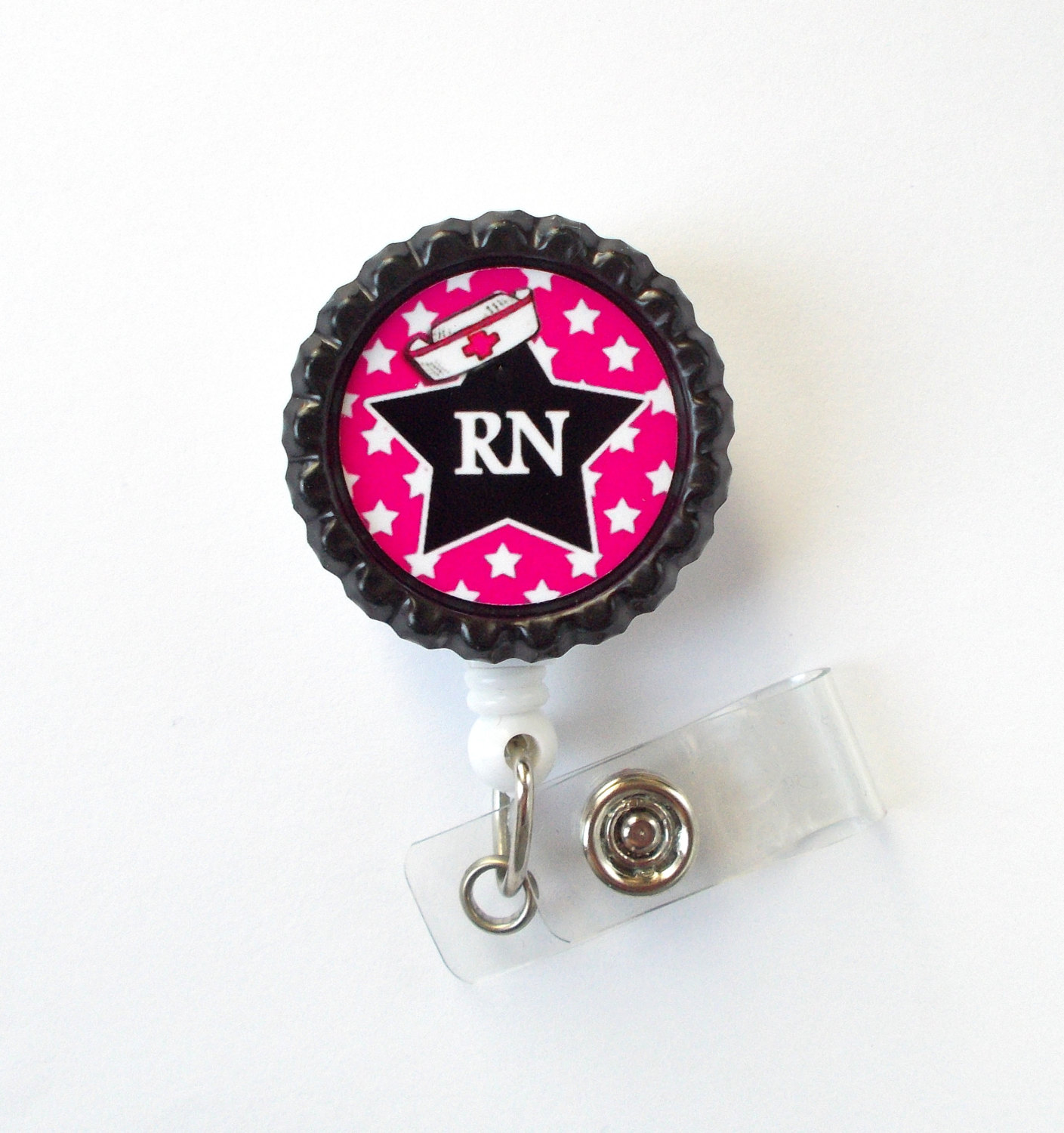 RN Star Black - Nurse Badge Reel - Nursing Badge - Nurse Badge Clip - Cute Badge Reel - Registered Nurse Badge Holder - OR Badge Holder