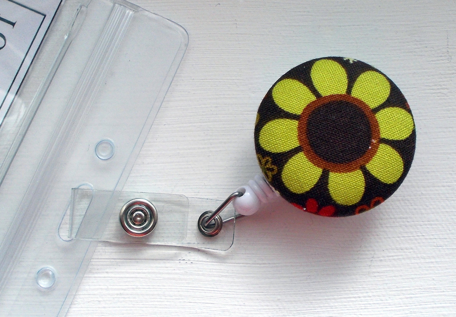 Brown and Green Daisy Flower - Name Badge Holder - Cute Badge Reels - Flower Badge Clip - RN badge - Unique Retractable ID Badge Holder