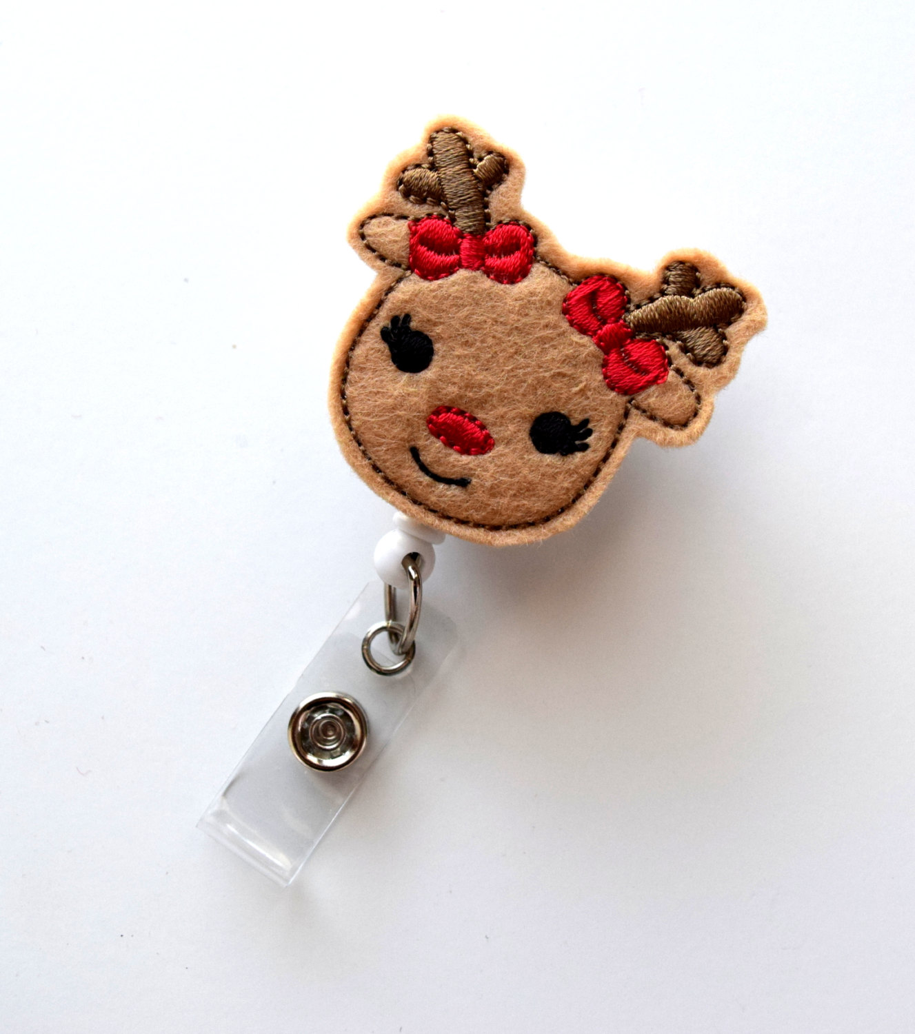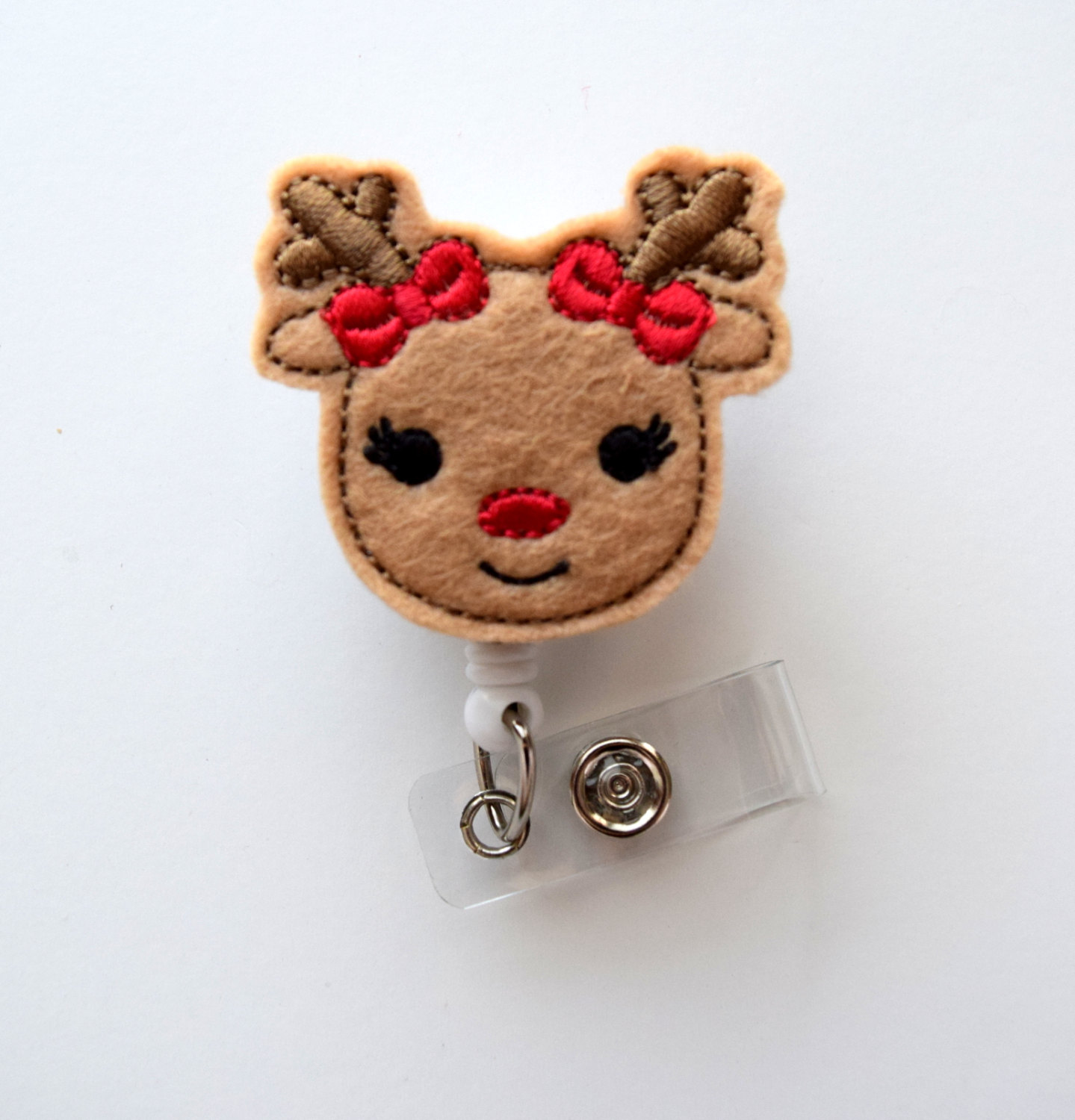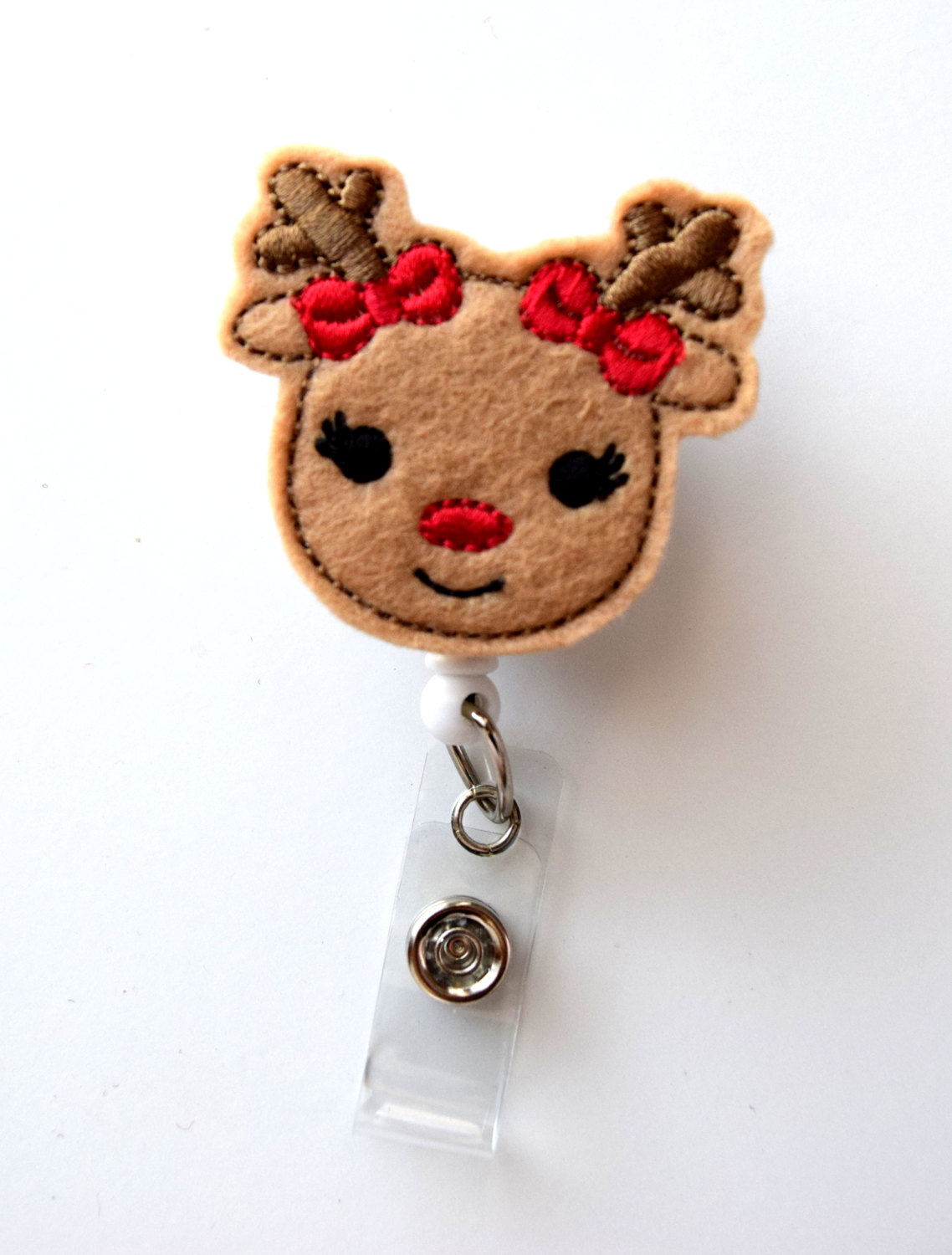 Rosie the Reindeer - Retractable ID Felt Badge Holder - Holiday Badge Reel - Nurses Badge Holder - Nurse Badge - Teacher Badge
