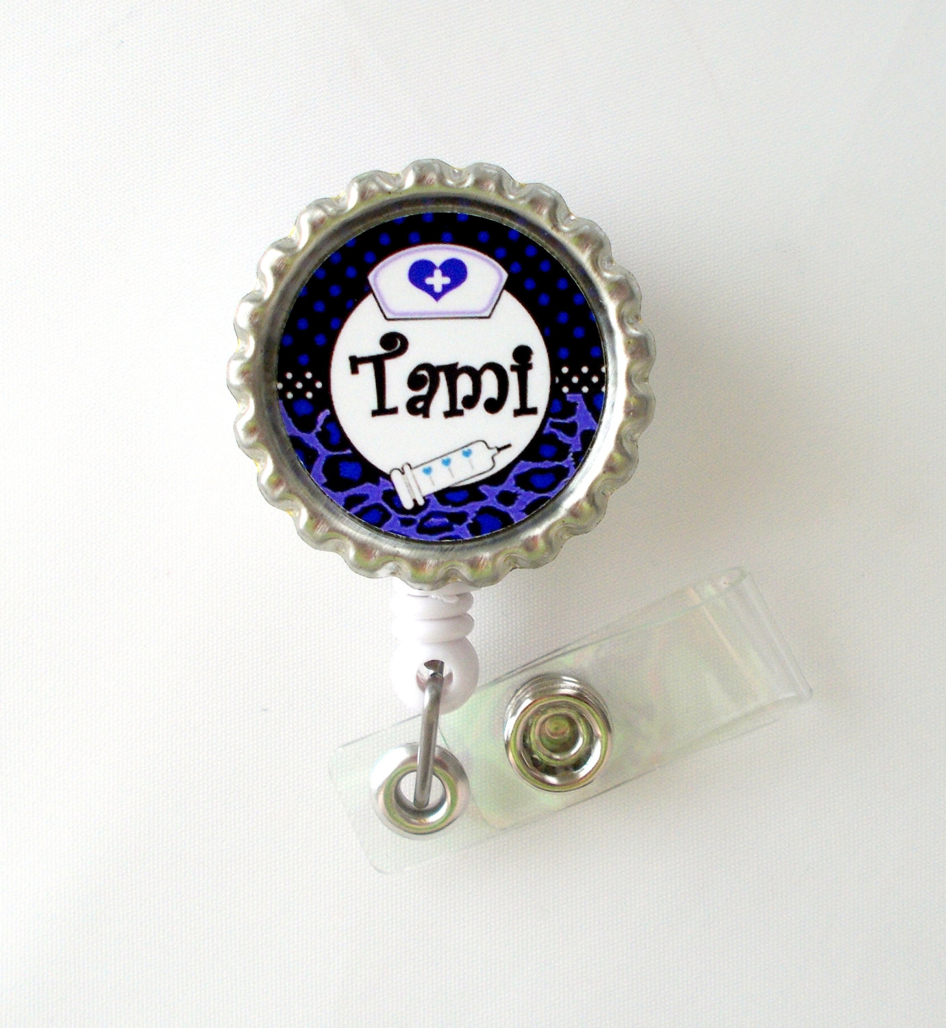 Personalized Leopard Purple - ID Badge Holder - Badge Reel - Name Badge Holder - Bottle Cap Badge - Nursing Badge - Nurse Badge Holder