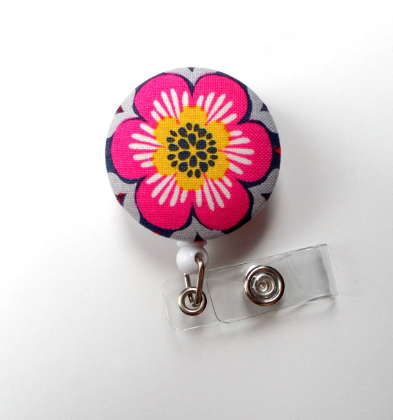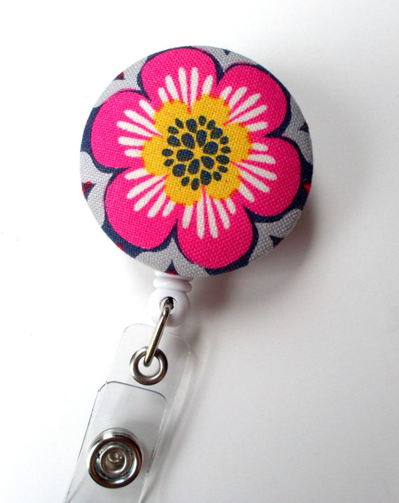 Flower Pink Yellow Gray - Cute ID Badge Reel - Nurse Badge Holder - Nursing Badge Reel - Retractable ID Badge Reel - Teacher Badge - Nurse